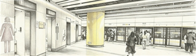 深圳地铁黄木岗综合交通枢纽负二层公共厕所。 AI修饰生成素描画