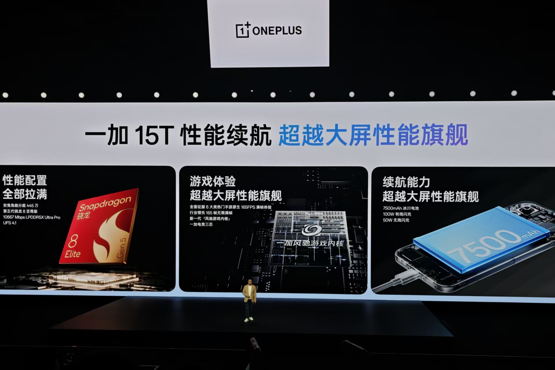 在发布会上,一加中国区总裁李杰用“性能续航超越大屏,旗舰体验完胜小屏”来形容一加15T,他表示,一加15T不是一次常规的迭代,而是在保持机身尺寸、轻巧手感的同时,对所有内在核心理念进行了大幅升级。“可以说是脱胎换骨,全面升级,没有任何的妥协,没有任何的短板。”